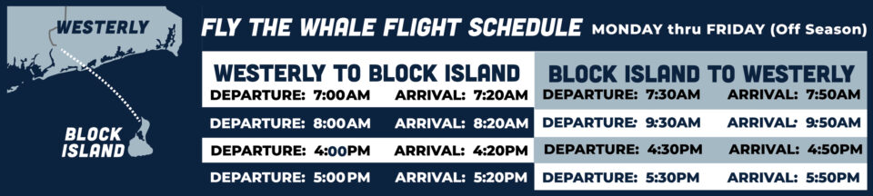 Scheduled Multiple daily flights departing from Block Island State Airport on Block Island and Westerly State Airport at Westerly, Rhode Island.