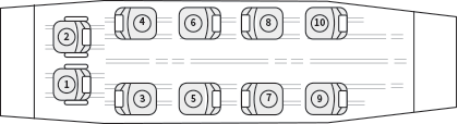- 8 seat passenger cabin with a canyon interior, club seating arrangements